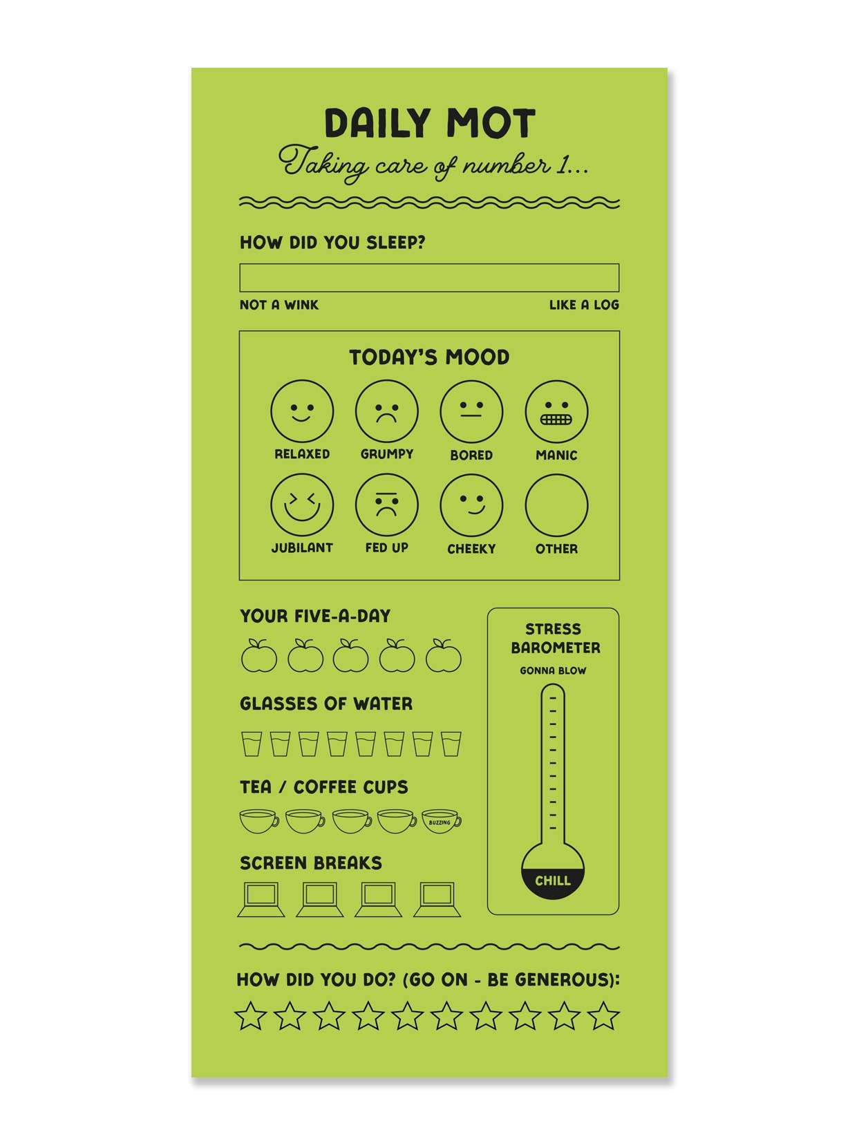 This planner pad is your new best friend! Keep on top of your mood, motivation and five-a-day with these handy reminders! This fun planner pad is a stylish addition to any desk space and makes a great gift for stationery lovers.