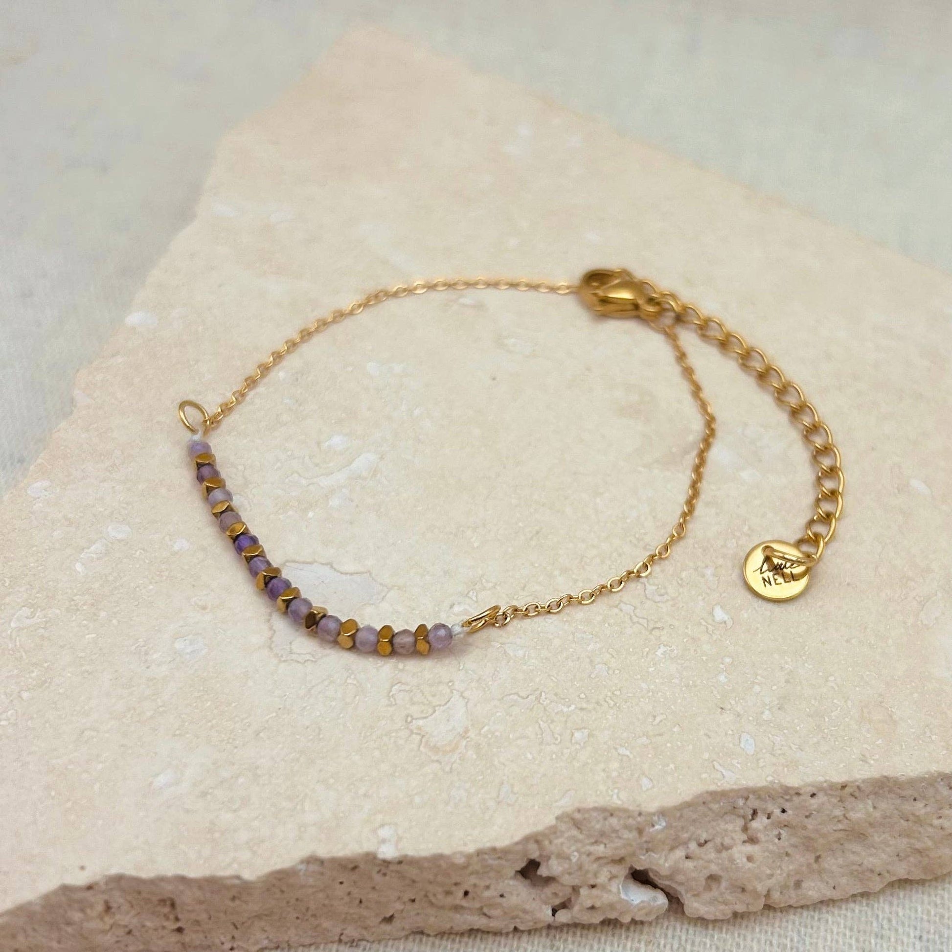 Finished with faceted gold and Amethyst beads that are valued for their calming and protective properties.