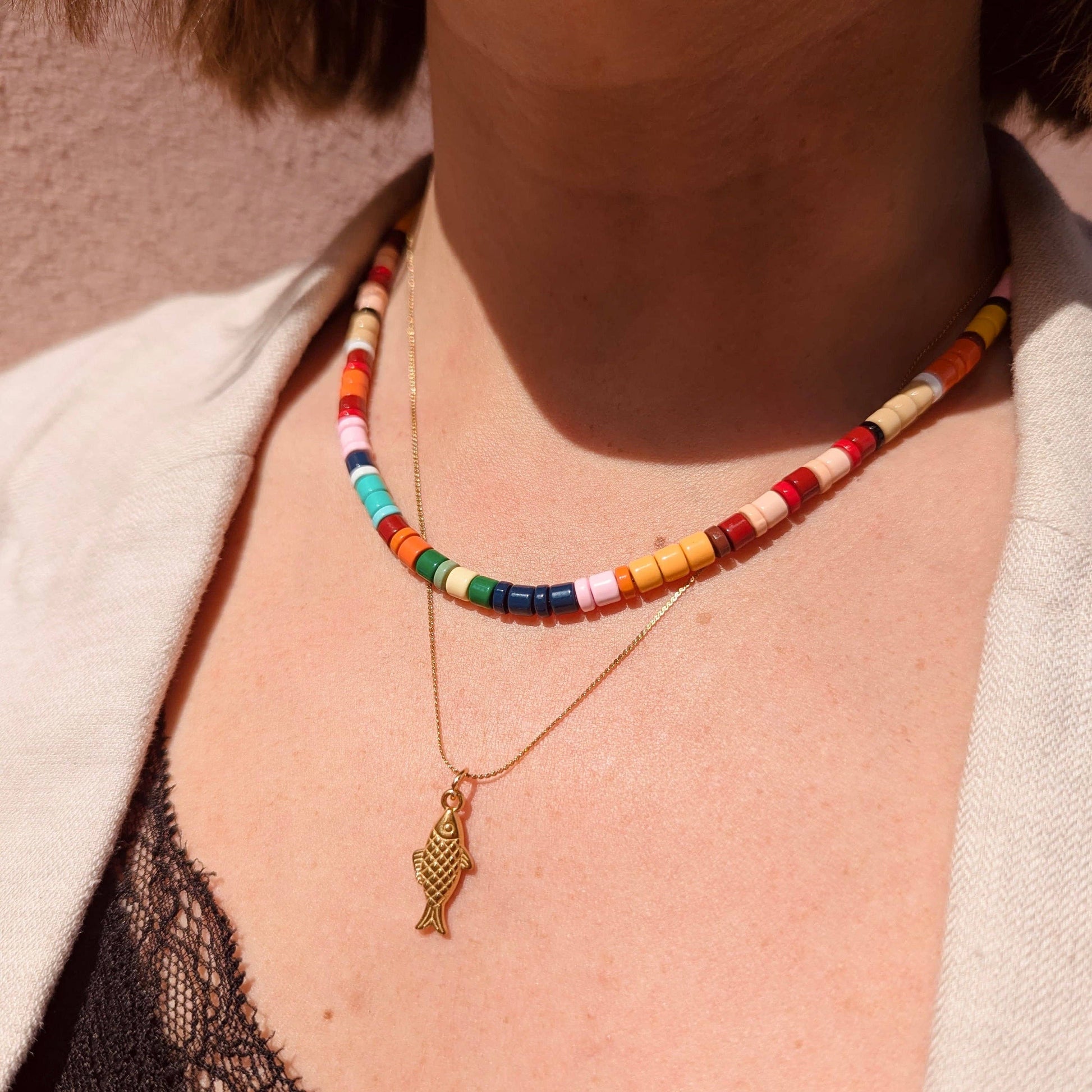 A delicate, vintage inspired fish charm on a super fine chain that glimmers like the sun hitting the ocean.