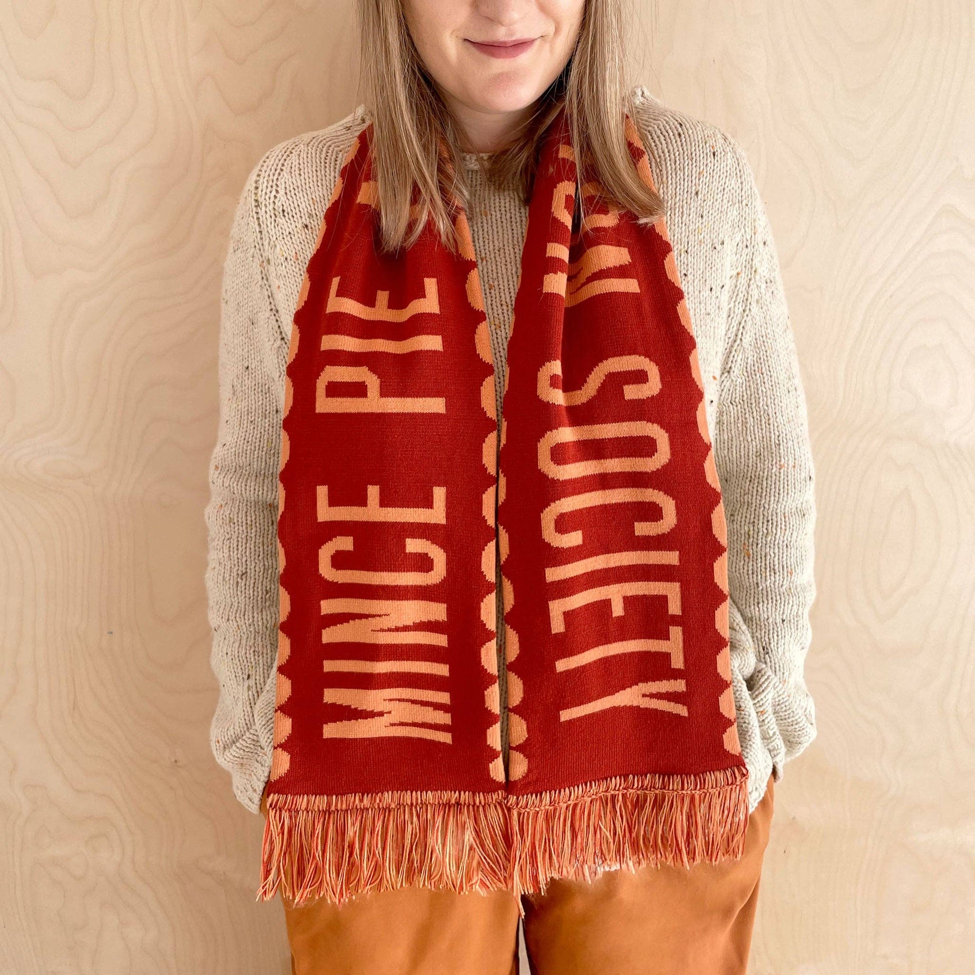 Alphabet Bags’ MINCE PIE APPRECIATION SOCIETY® scarves are made with love here in the UK using soft acrylic yarn. The ultimate, unique Christmas gift for mince pie enthusiasts of all ages.