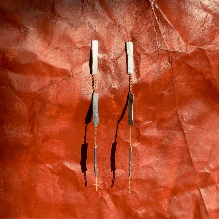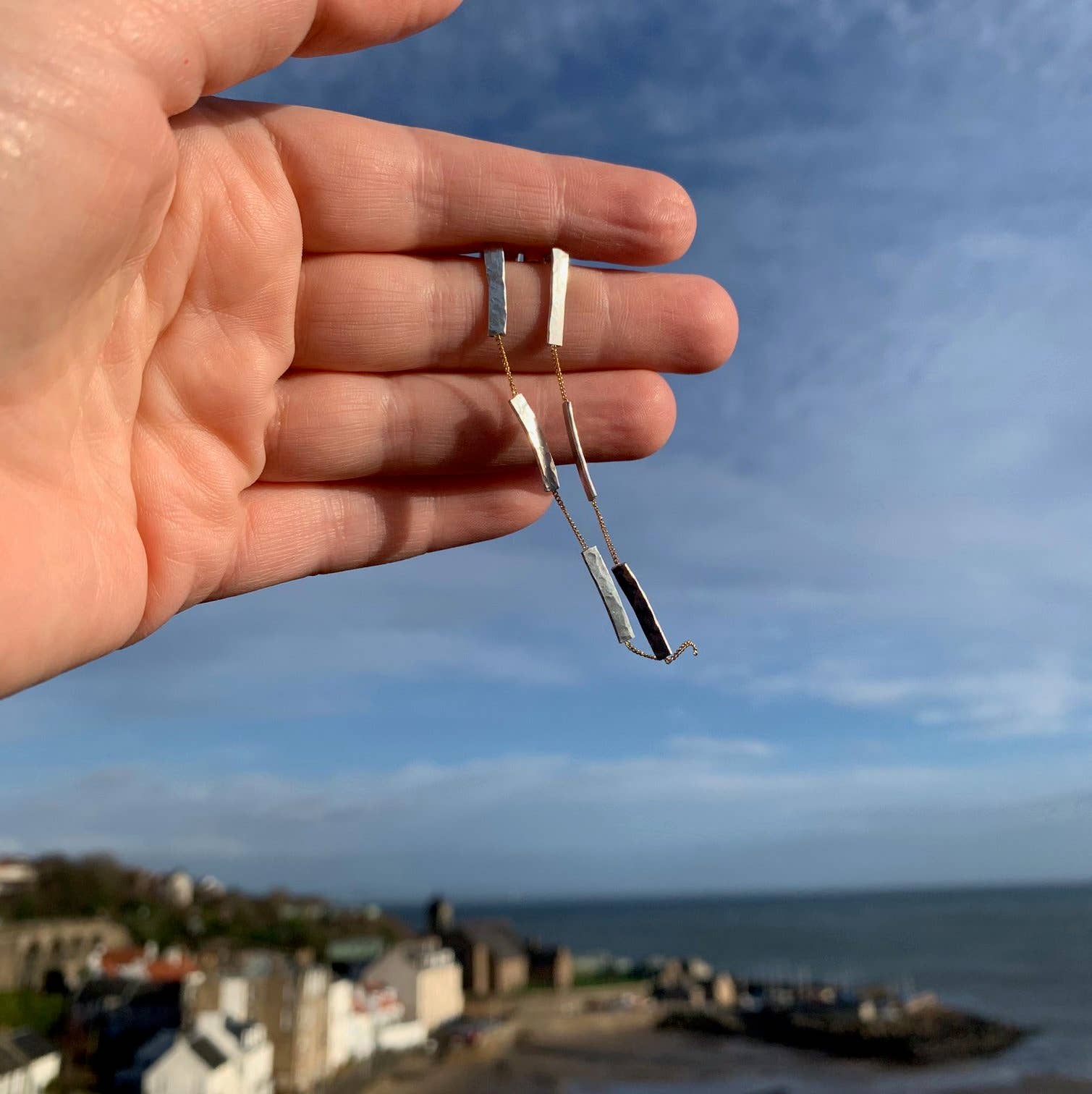 Handmade in Scotland. Materials Aluminium, gold-filled chain, Sterling silver earring post and butterfly back