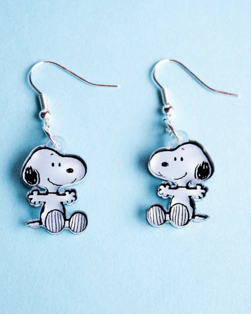 Each Snoopy measures approximately 2 cm high by 1.5 cm wide. Total drop measures 4 cm long