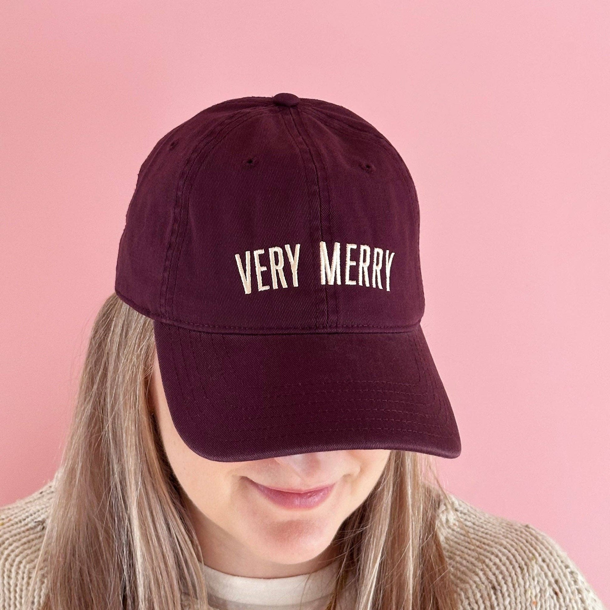 Bring a little holiday cheer wherever you go with this ‘VERY MERRY' embroidered baseball cap.